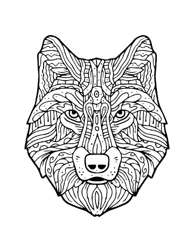 Imprimez les dessins tete de loup mandala à colorier gratuitement.